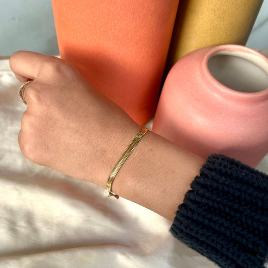 Snake Bracelet Gold Plated, Anti-Tarnish, Waterproof 8.5 inches with Extension & Heart Charm
