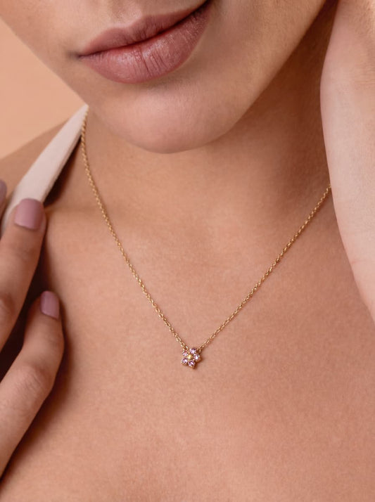 Rose Pink Blossom Crystal Gold Pendant Necklace