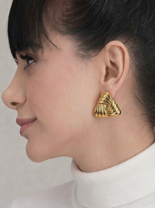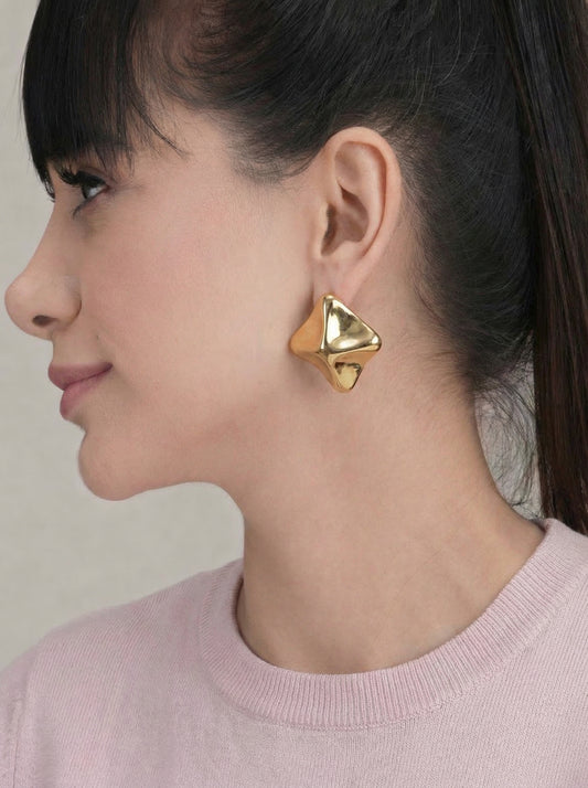 Wrinkle Bow Earrings Gold Plated, Waterproof and Anti-Tarnish