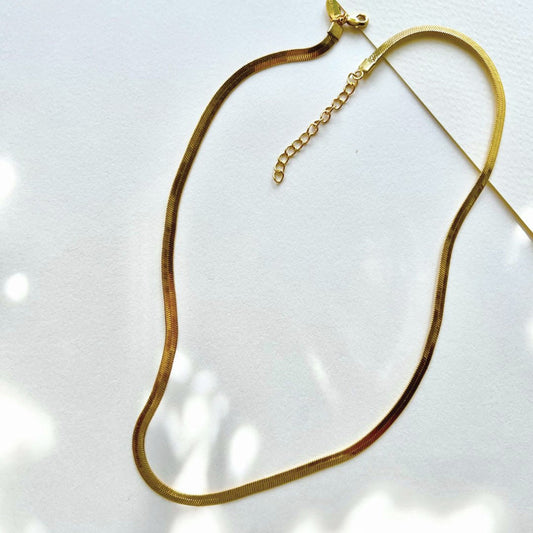 Flat Snake Chain Necklace Gold Tone