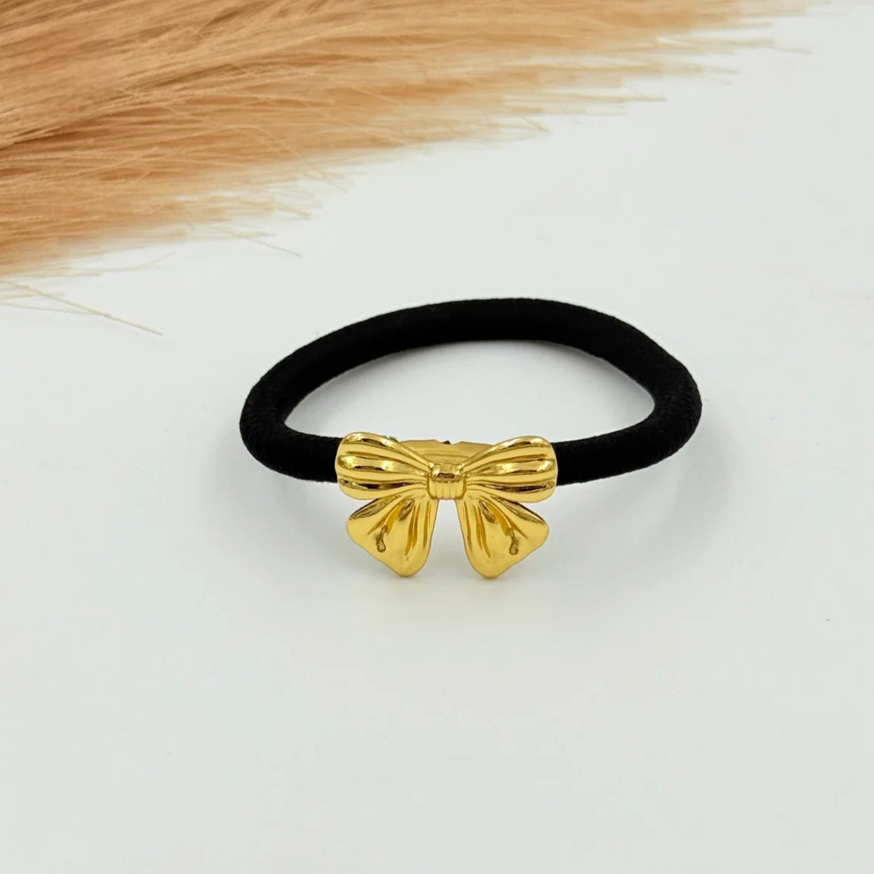 A distinctive hair tie featuring a bold, abstract texture that adds a...