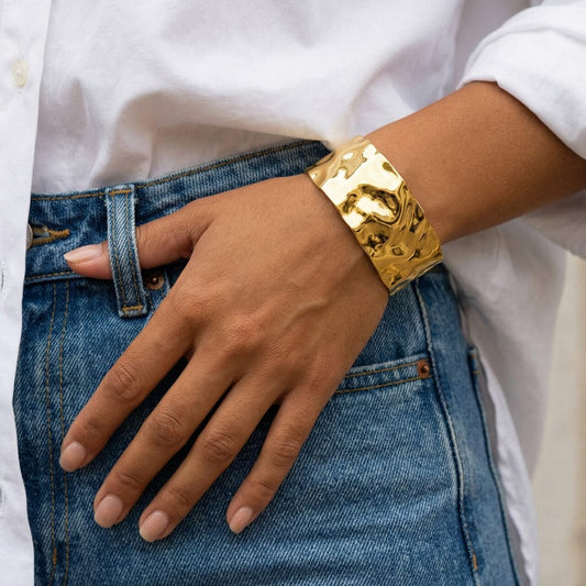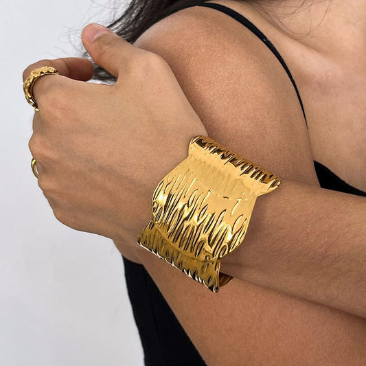 Textured Wide Gold Cuff Bracelet – 18K Gold Plated