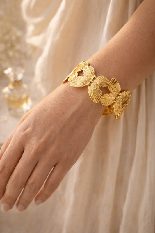 Butterfly Texture Cuff Bracelet – 18K Gold Plated