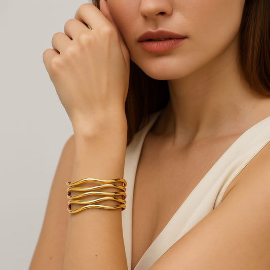 Fluid Wave Layered Cuff Bracelet – 18K Gold Plated