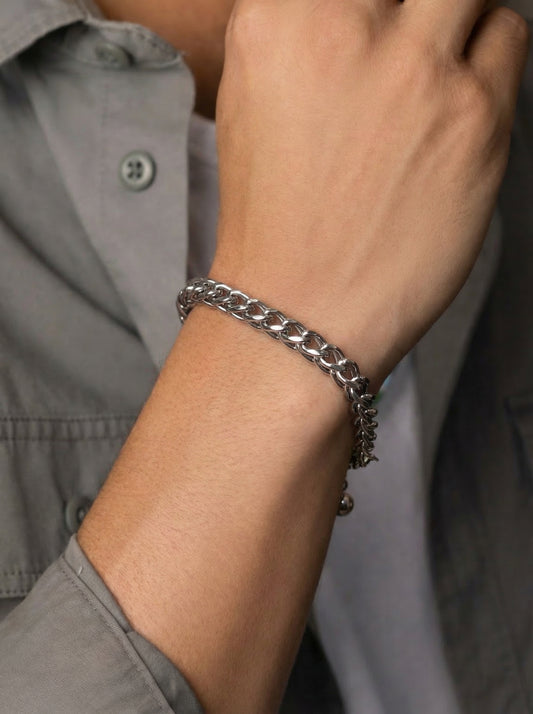 Sleek Silver Vertical Bar Pendant Necklace for Men - 60 CM