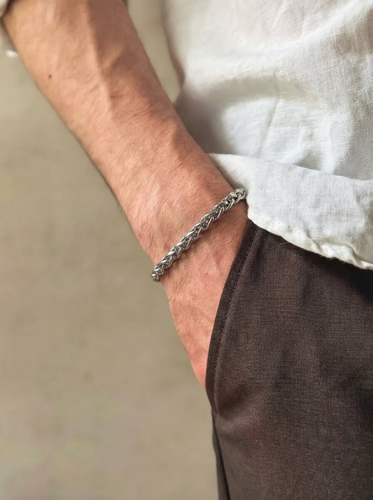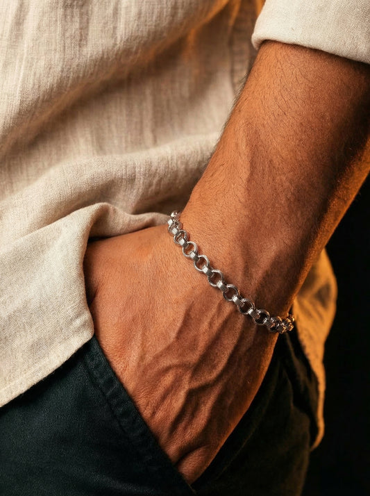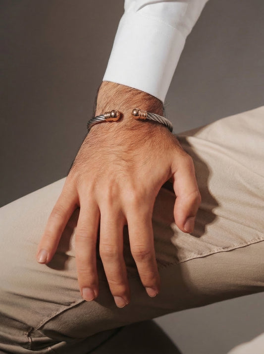 Silver Rope Cable Men’s Kada with Rose Gold Ends