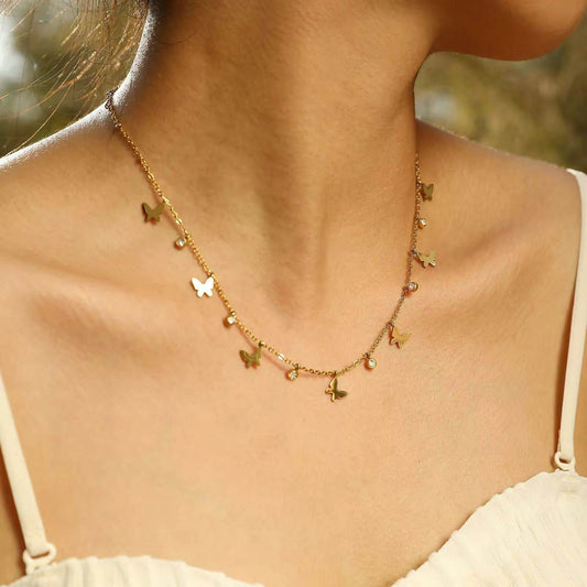 Butterfly Diamond Charms Necklace Gold Plated, Waterproof and Anti-Tarnish