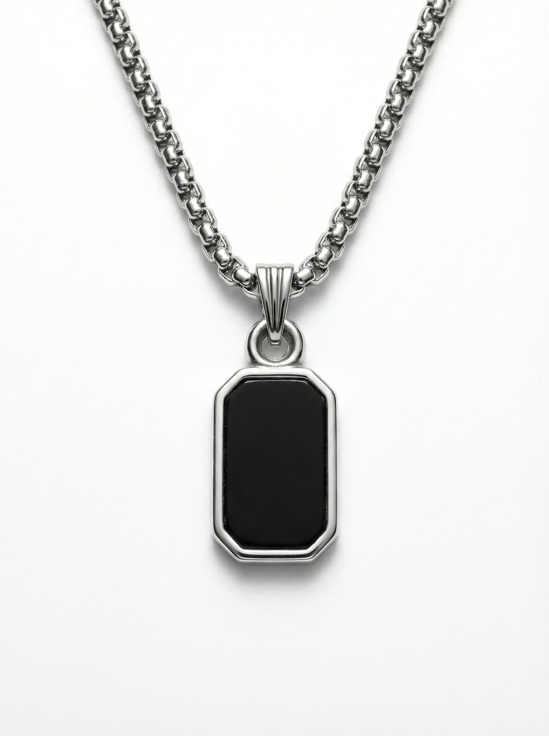 Elevate your everyday style with this Classic Black Octagon Pendant Necklace. Designed with a sleek octagonal frame and glossy black centerpiece, this pendant delivers a perfect blend of elegance and masculinity.