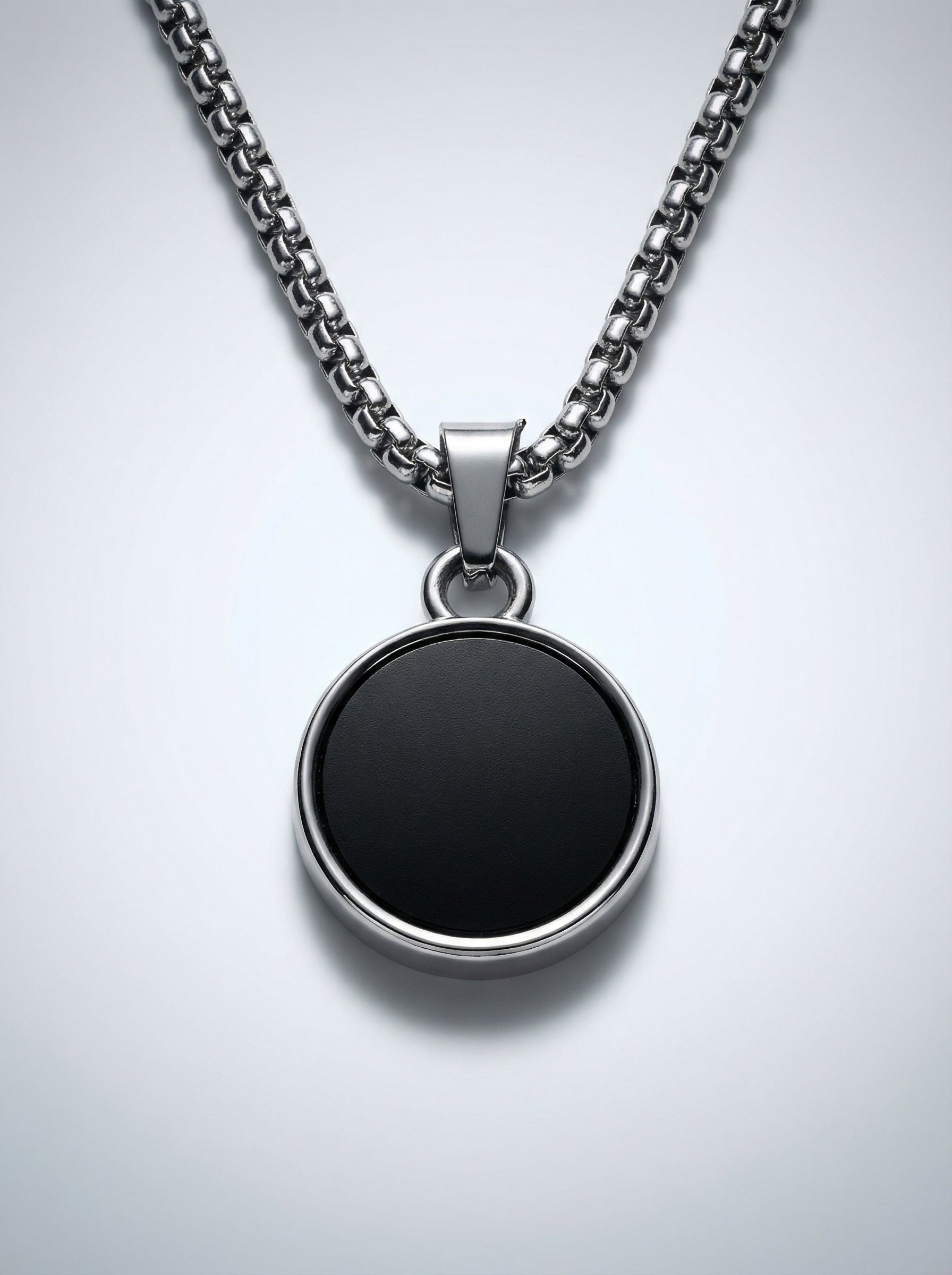 Upgrade your style with this Classic Black Round Pendant Necklace, designed for men who appreciate timeless and minimal accessories. Featuring a smooth circular frame with a deep black glossy center, this pendant delivers a clean, premium look that suits every outfit.