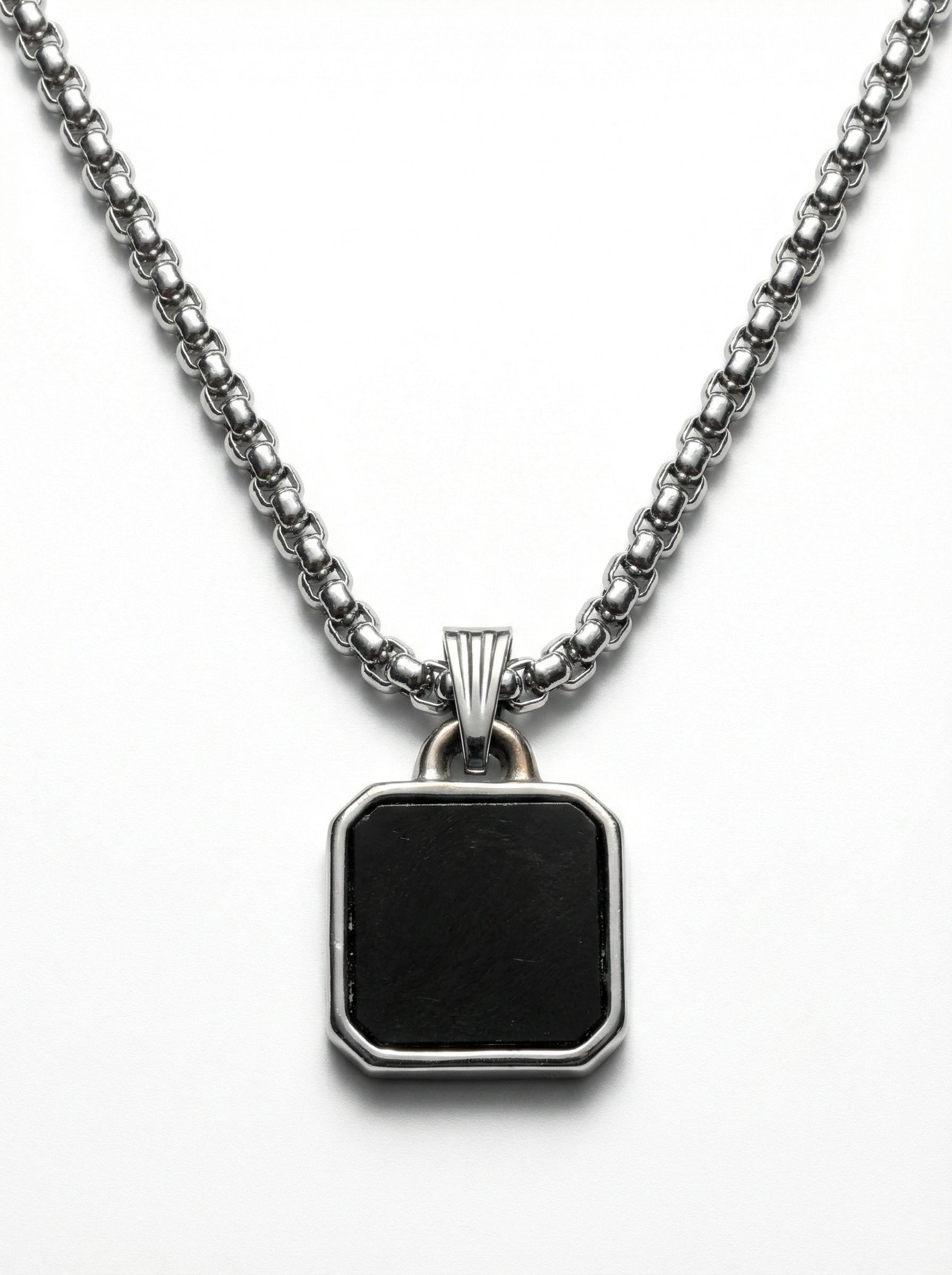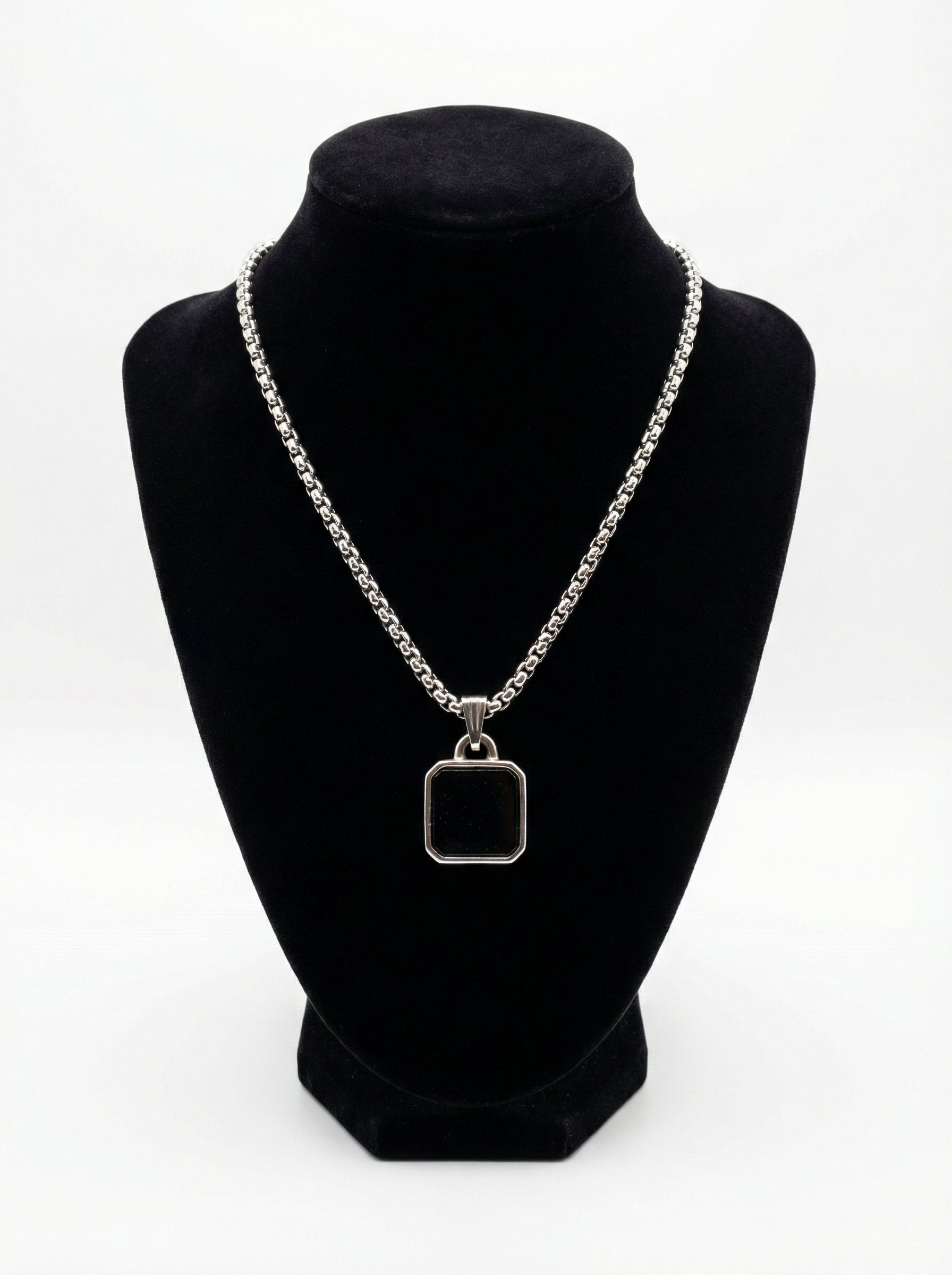 Classic Black Square Pendant Necklace for Men - 60 CM