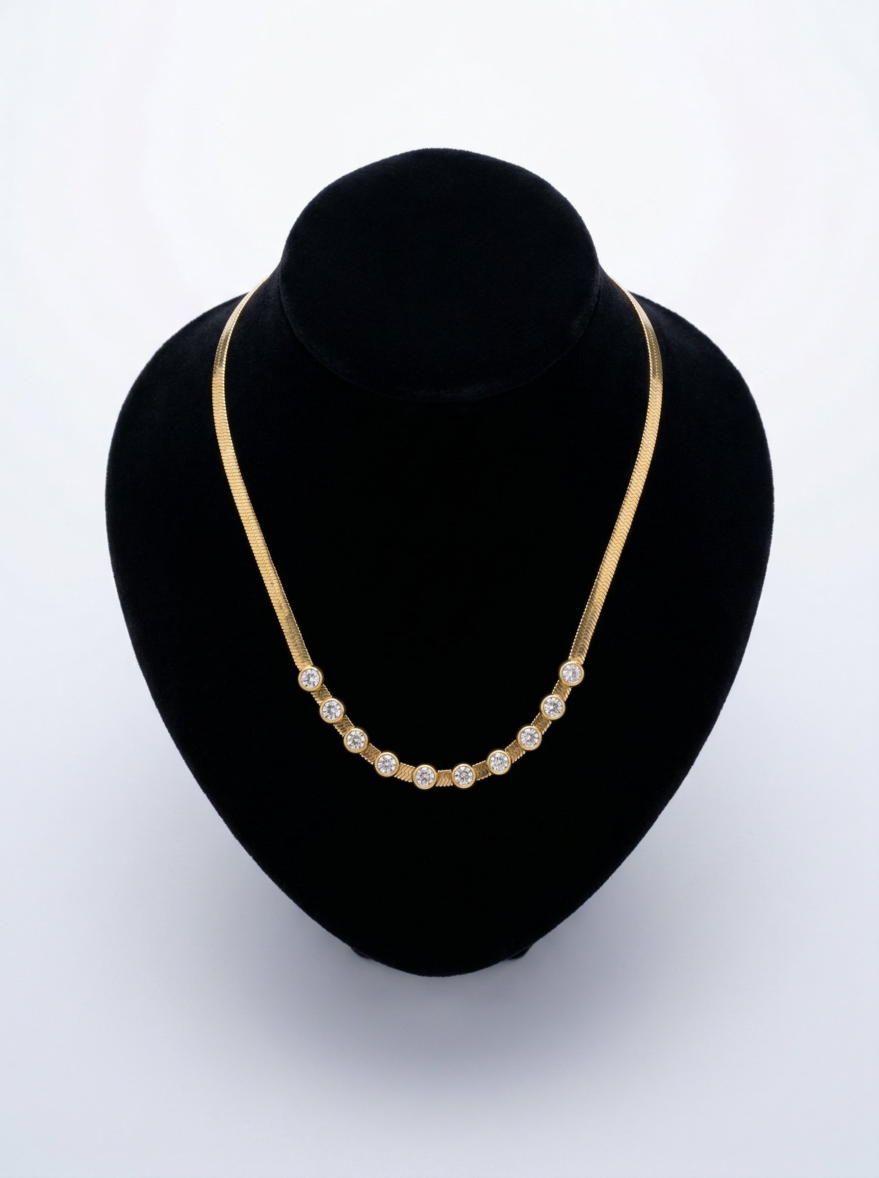 Elegant, radiant, and timeless — the Crystal Halo Charm Necklace features a row of brilliant round-cut stones set along a sleek gold chain, creating a soft, glowing statement.
