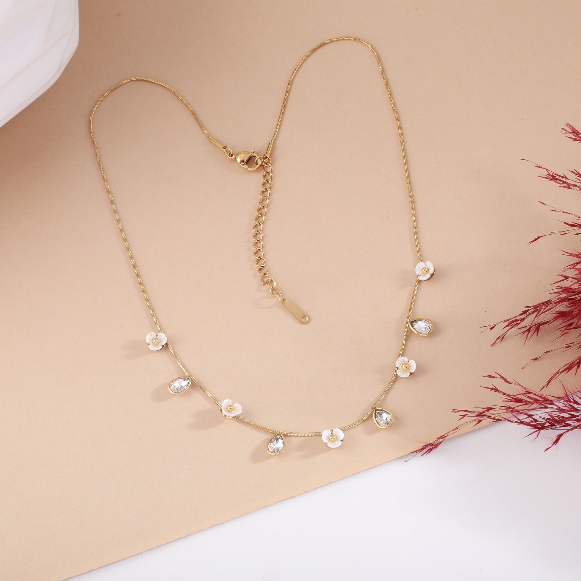 Necklaces: Crafted with meticulous attention to detail, our necklaces offer a blend of elegance and durability. Each piece is anti-tarnish, waterproof, and hypoallergenic, ensuring long-lasting beauty and comfort for sensitive skin. Plated in luxurious gold, these necklaces are perfect for adding a touch of sophistication to any outfit, whether for daily wear or special occasions.