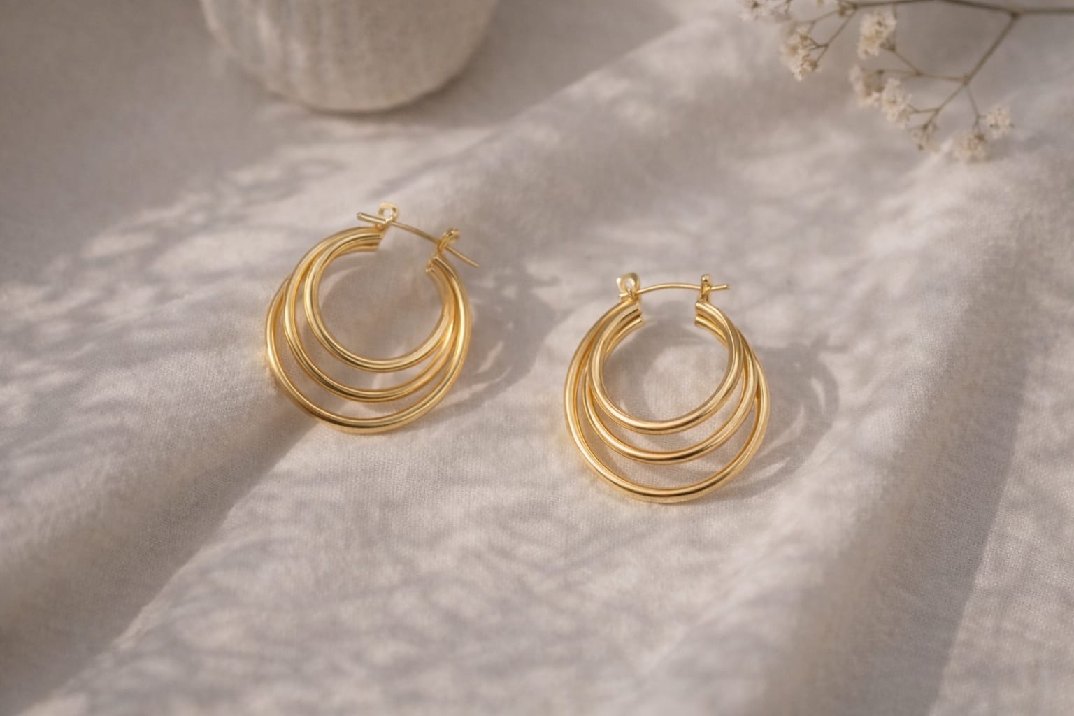 Upgrade your everyday style with these Layered Triple Hoop Gold-Plated Earrings. Featuring three perfectly aligned circular hoops in a single elegant design, these earrings create a bold yet minimal statement that suits both western and ethnic outfits.