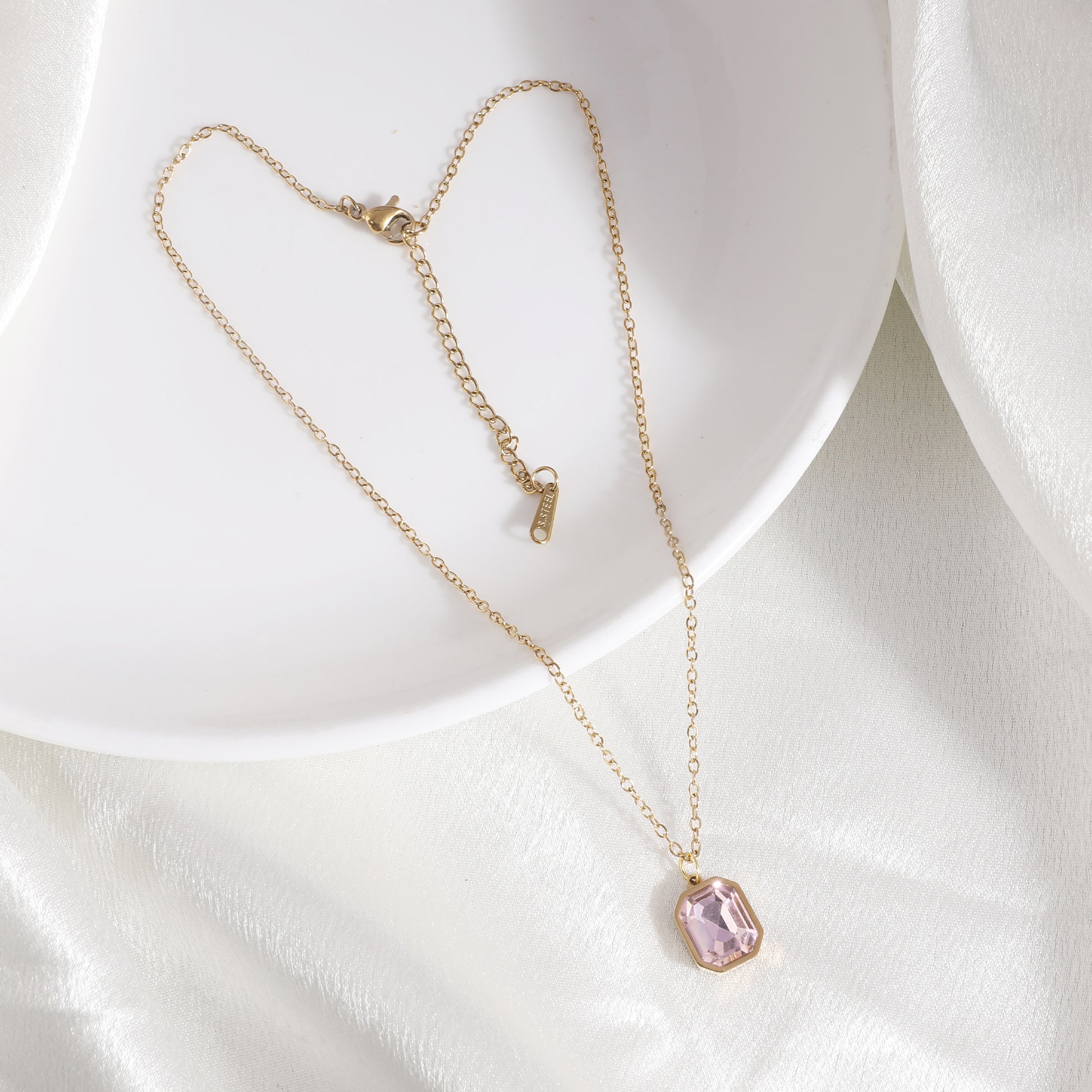 Pink Octagon Emerald Necklace