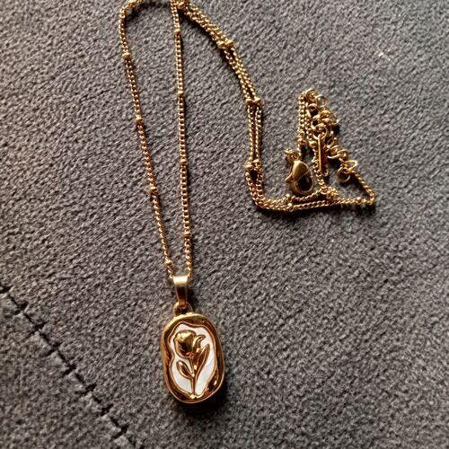 Rose Enamel Chain Necklace Gold Plated, Waterproof and Anti-Tarnish