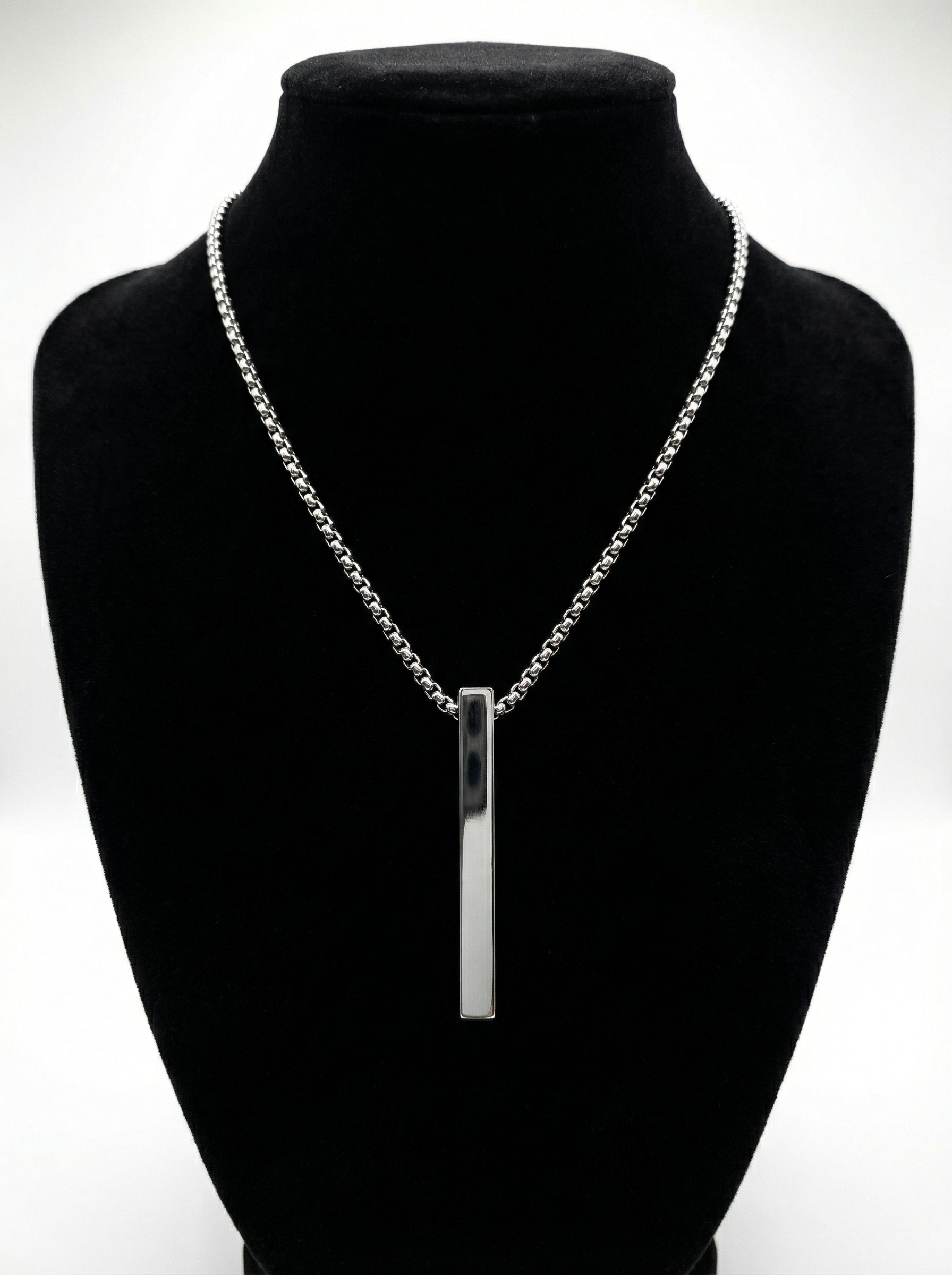 Upgrade your everyday look with this Sleek Silver Vertical Bar Pendant Necklace, designed for men who prefer clean and minimal styling. Featuring a smooth polished finish and a slim vertical bar design, this pendant adds a subtle touch of elegance to any outfit.